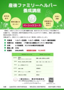 2025.12.10 2026年産後ファミリーヘルパー養成講座 ベーシックコース 産後ファミリーヘルパー・ベビーシッターの方向けの講座です。 とても充実した内容です。修了者には認定証をお渡しします 今だけのキャンペーンです チラシ 申込詳細はこちら Share 【実践】1月・2月パパのための沐浴講座&ママのからだケ…前の記事